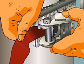Pass the loose end of the webbing through the slot in the ratchet handle axle