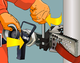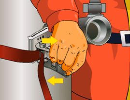 Tighten the webbing using the ratchet handle until the clamping jaws are secure